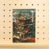 「ヲかシな建物探訪記」に収録されている、面白くてわくわくする、そんなヲかシな建物たちを水彩タッチでジオラマ風に描いたイラストシリーズのポストカード6枚セットです。