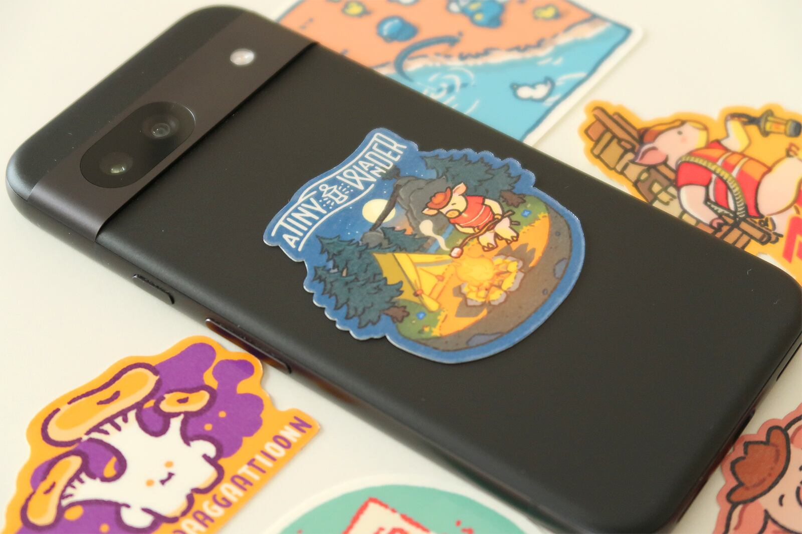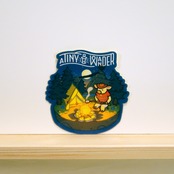 A Tiny Wanderの主人公「ぶぅ」がキャンプをしているステッカーです。